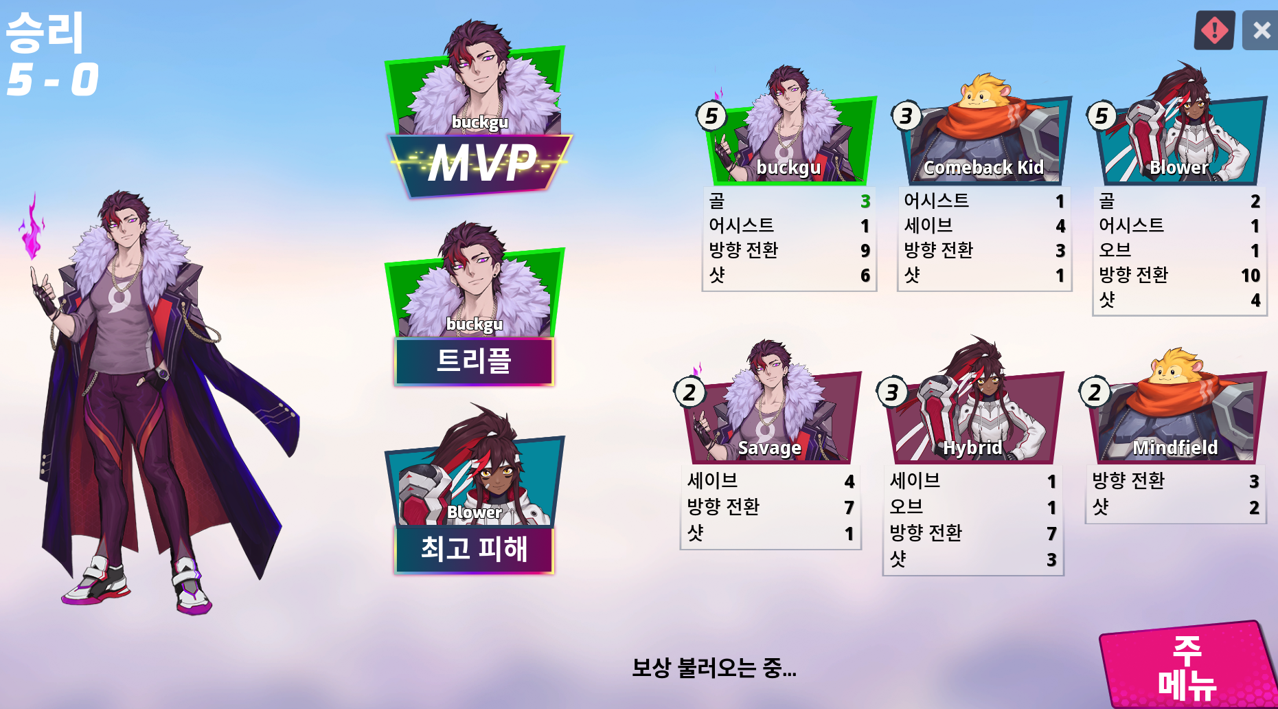 6명이 매칭되어 한 팀에 3명이서 플레이 하는 축구 게임의 틀을 가지고 있다.