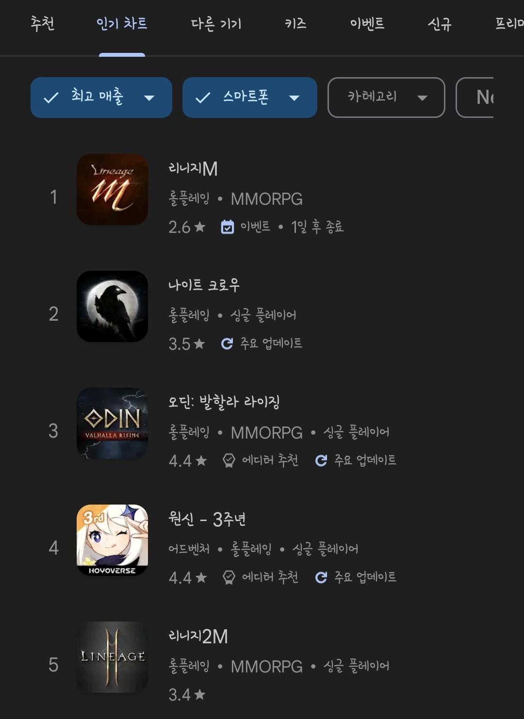 성공 이후 타 게임들의 방향 또한 모바일 RPG의 방향성을 확신하게 되었고
