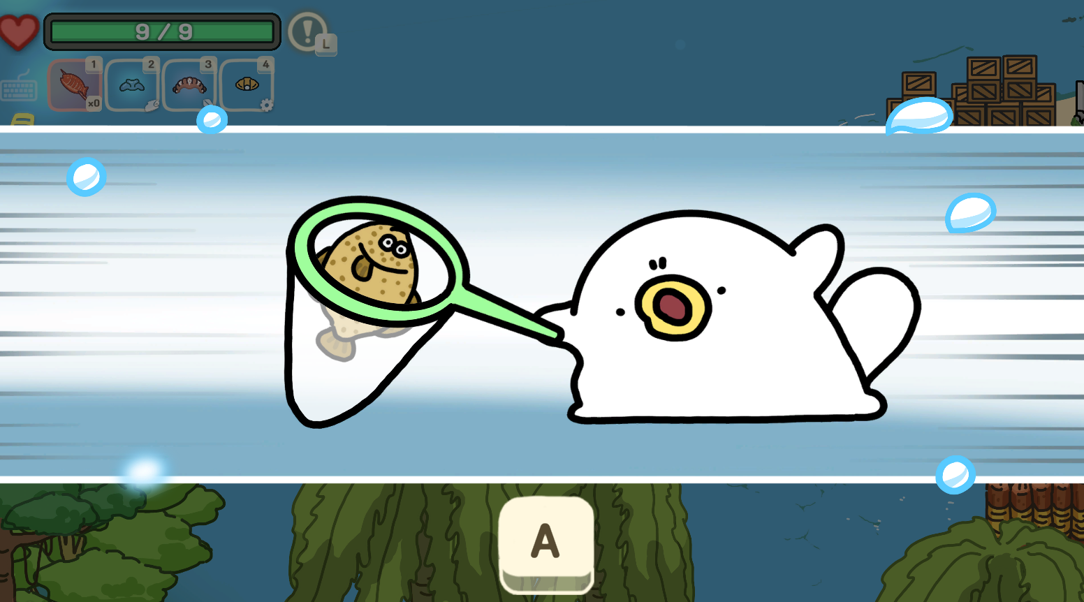 우선 첫 번째 버튼은 "잠자리채 휘두르기"(이하 A버튼)이다.