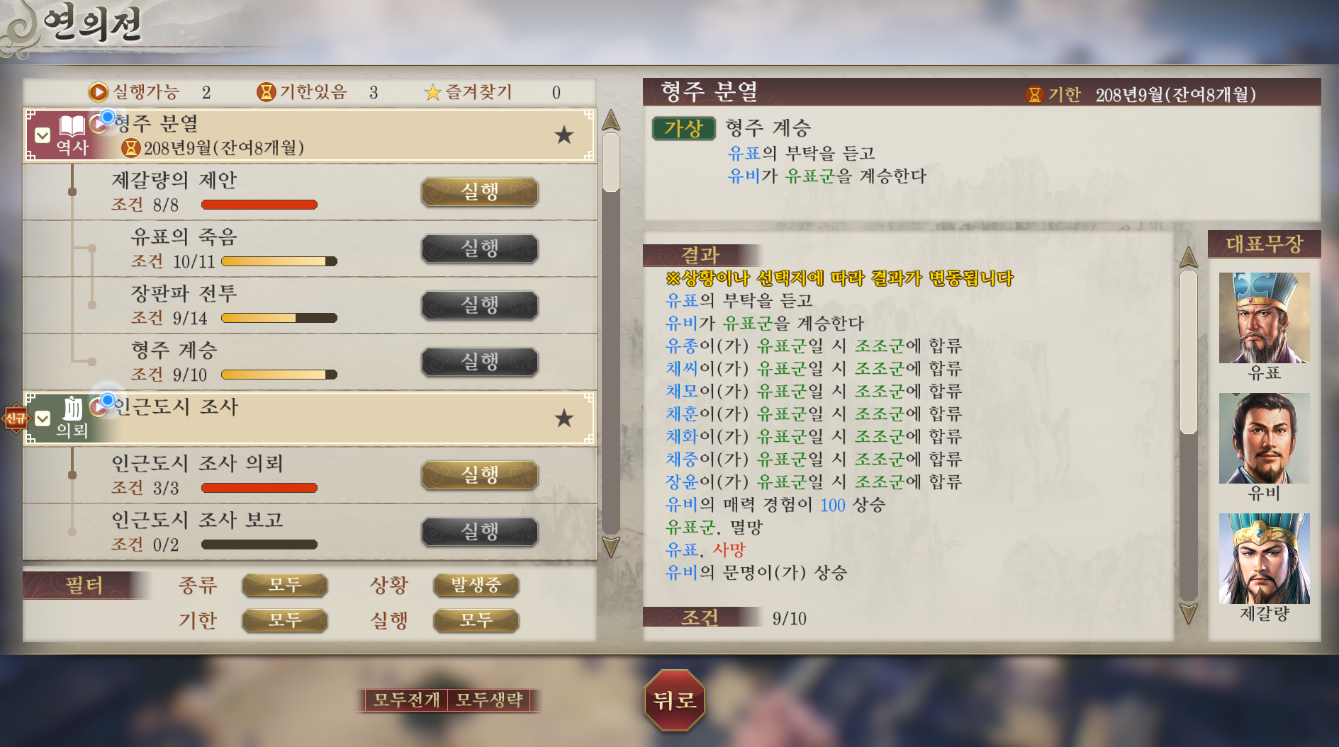 하지만 코에이 삼국지답게 연의라는 역사적 이벤트 진행 도중에도