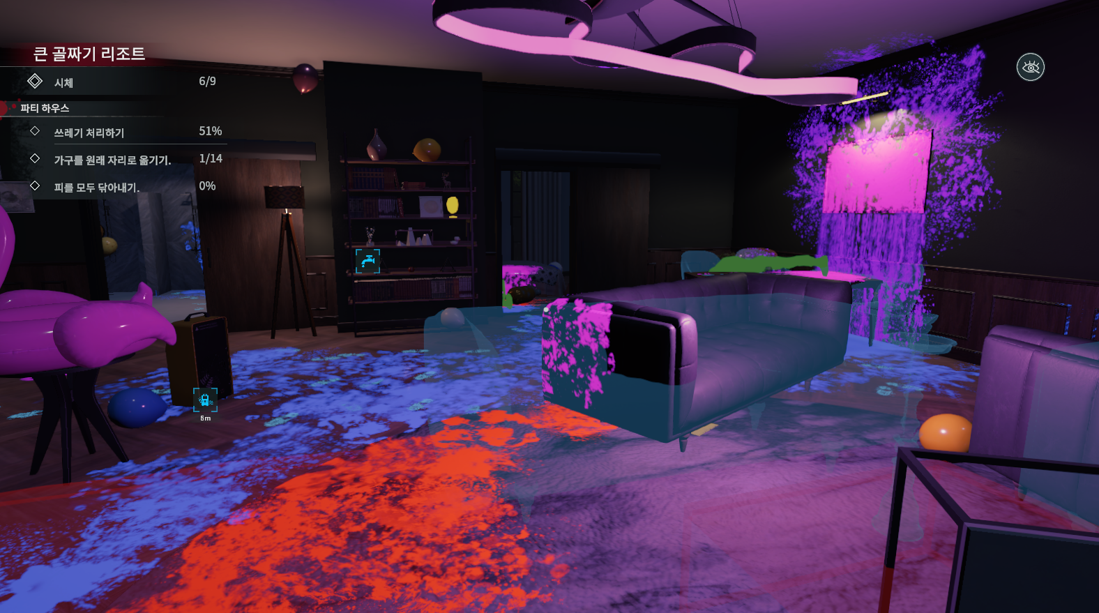 청소 중간중간 단서와 범죄도구들을 확인하며 퍼즐을 맞추는 재미도 있다.
