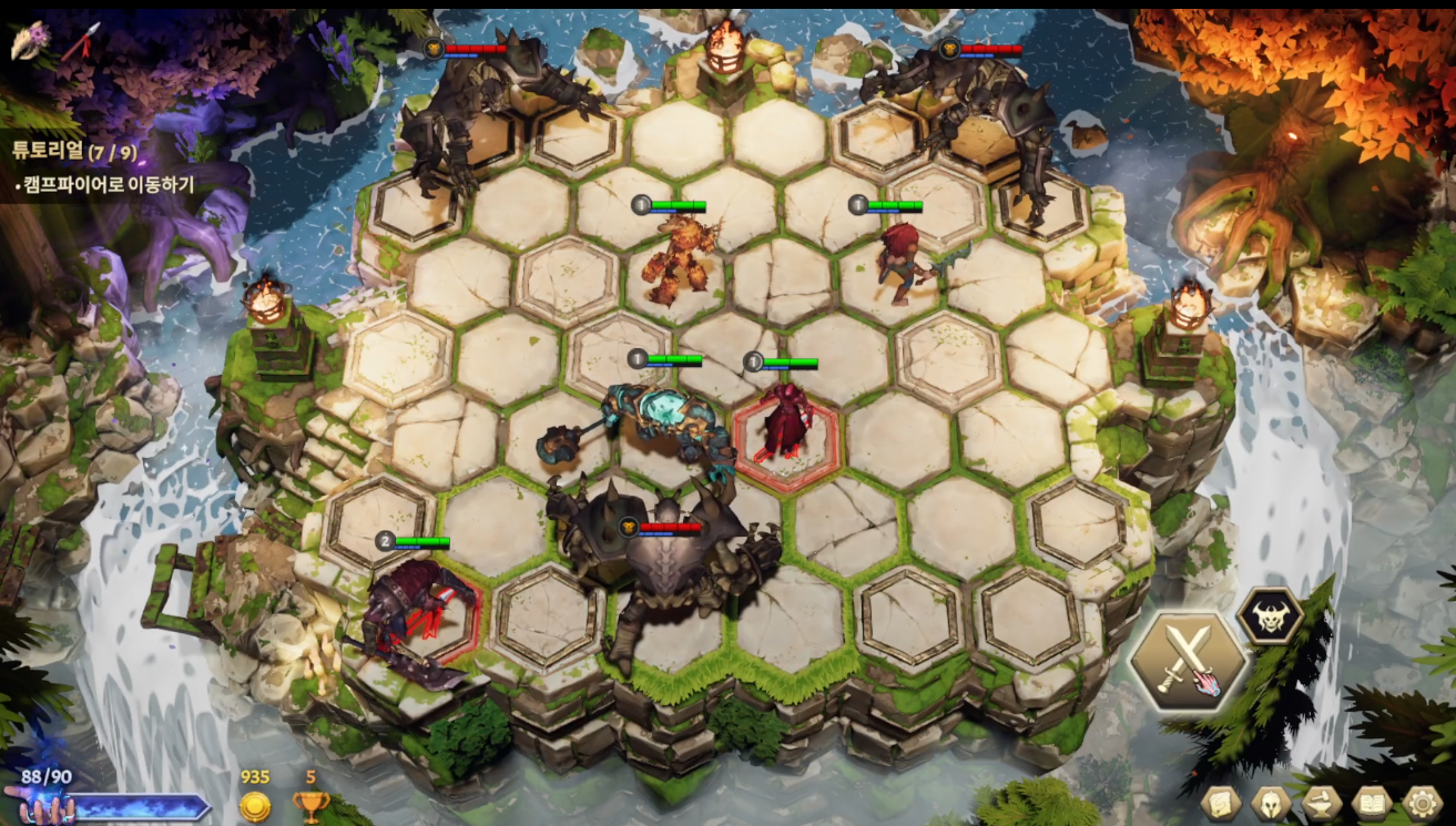 각 전투 진행 전 어디에, 어떤 기물을 배치할 것인가에 대한 턴도 준비되어 있다.
