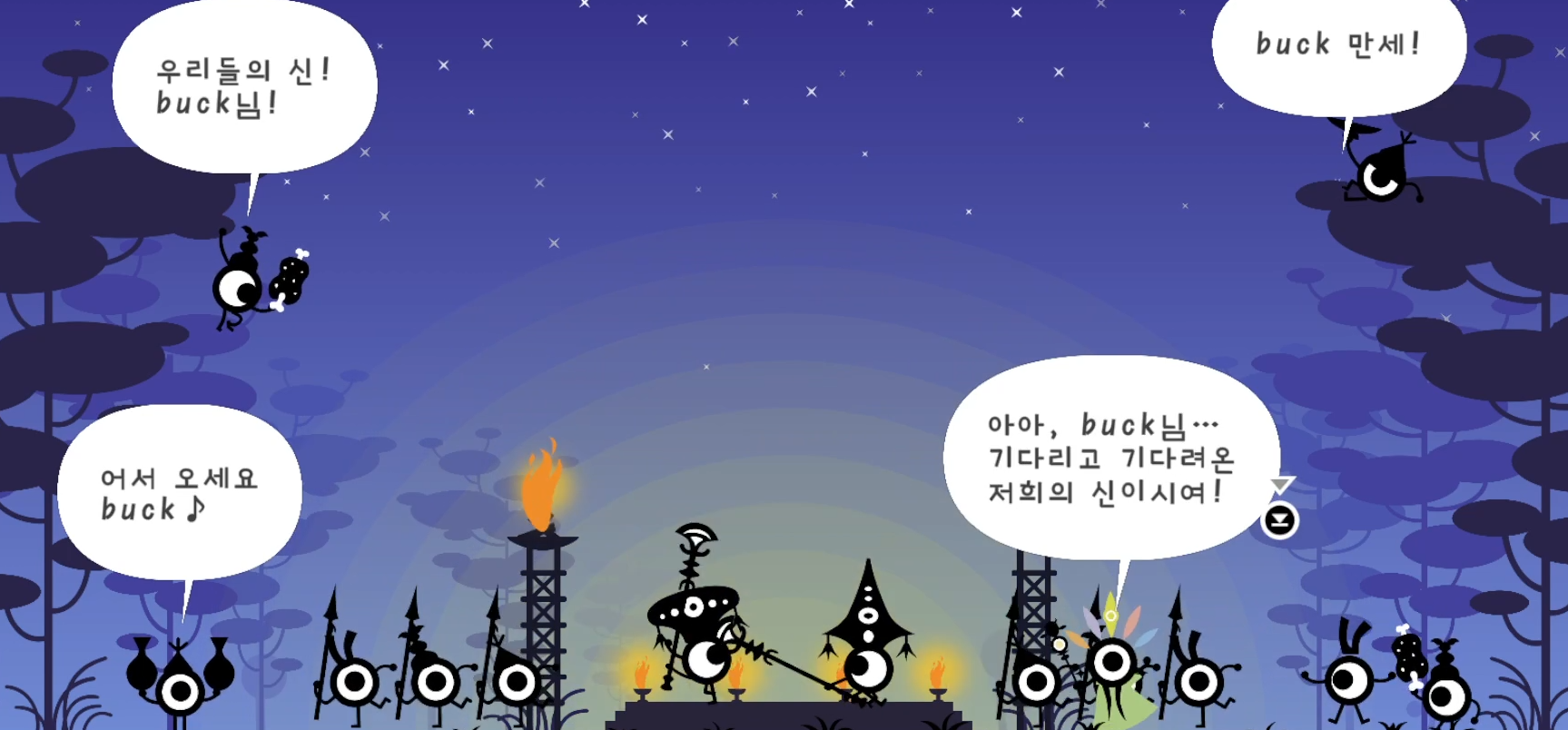 게임의 스토리는 "그것"을 찾기 위한 파타퐁 종족들의 좌충우돌 리듬 여행기입니다!