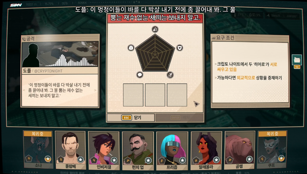 플레이어는 해당 업무 전화를 받고, 요구 조건을 파악한 뒤, 적절한 영웅을 배치하는