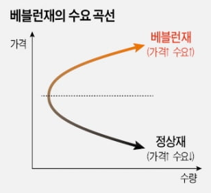 이러한 소비의 심리 덕분에 베블런은 "베블런 곡선"이라는 이름으로