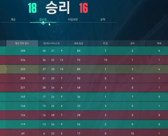 내가 얼마나 적을 무찔렀는가, 나를 무찌른 적은 누구인가 등을 시각화한 그것 말입니다.
