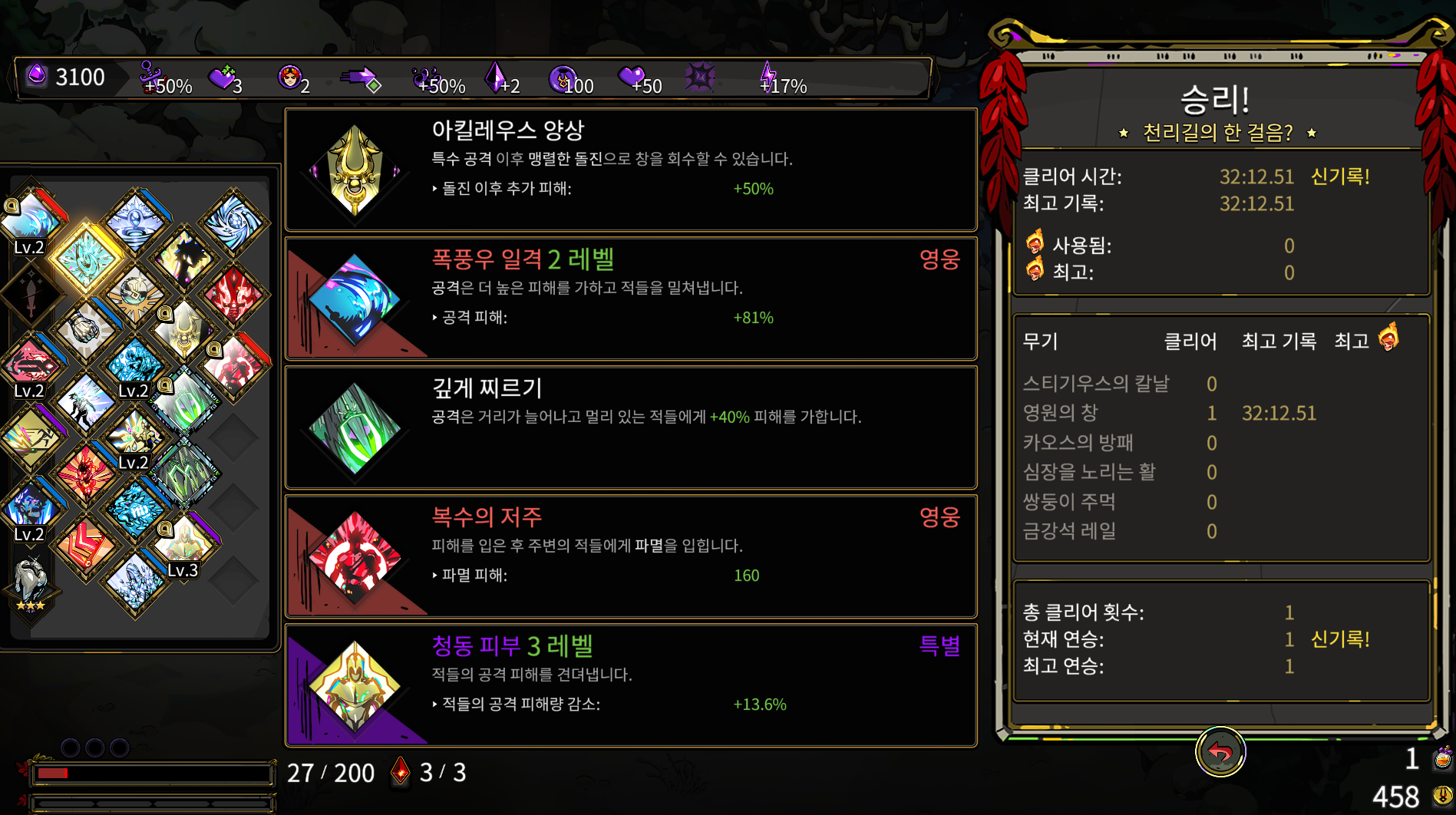 RPG성을 섞은 로그라이크이기 때문에 판수에 따라 클리어에 어려움이 적다.
